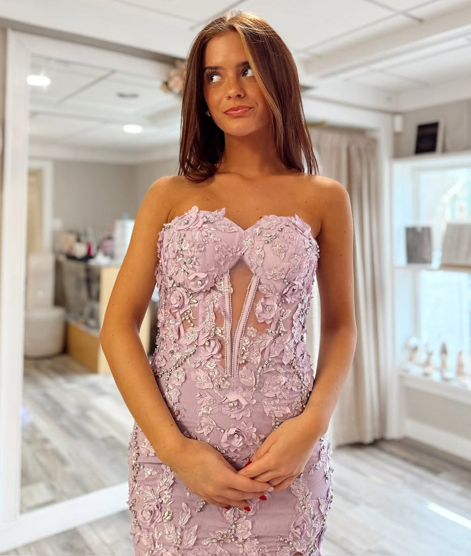Make a stunning entrance in this elegant sweetheart neckline prom dress, crafted from luxurious tulle and adorned with delicate lace appliqués. The flowing floor-length silhouette features a graceful slit that adds movement and sophistication to your evening look. Perfect for prom, formal galas, or upscale celebrations, this gown combines timeless elegance with contemporary design. The intricate lace detailing and sweetheart bodice create a flattering, romantic aesthetic that ensures you'll feel confident and radiant all night long.