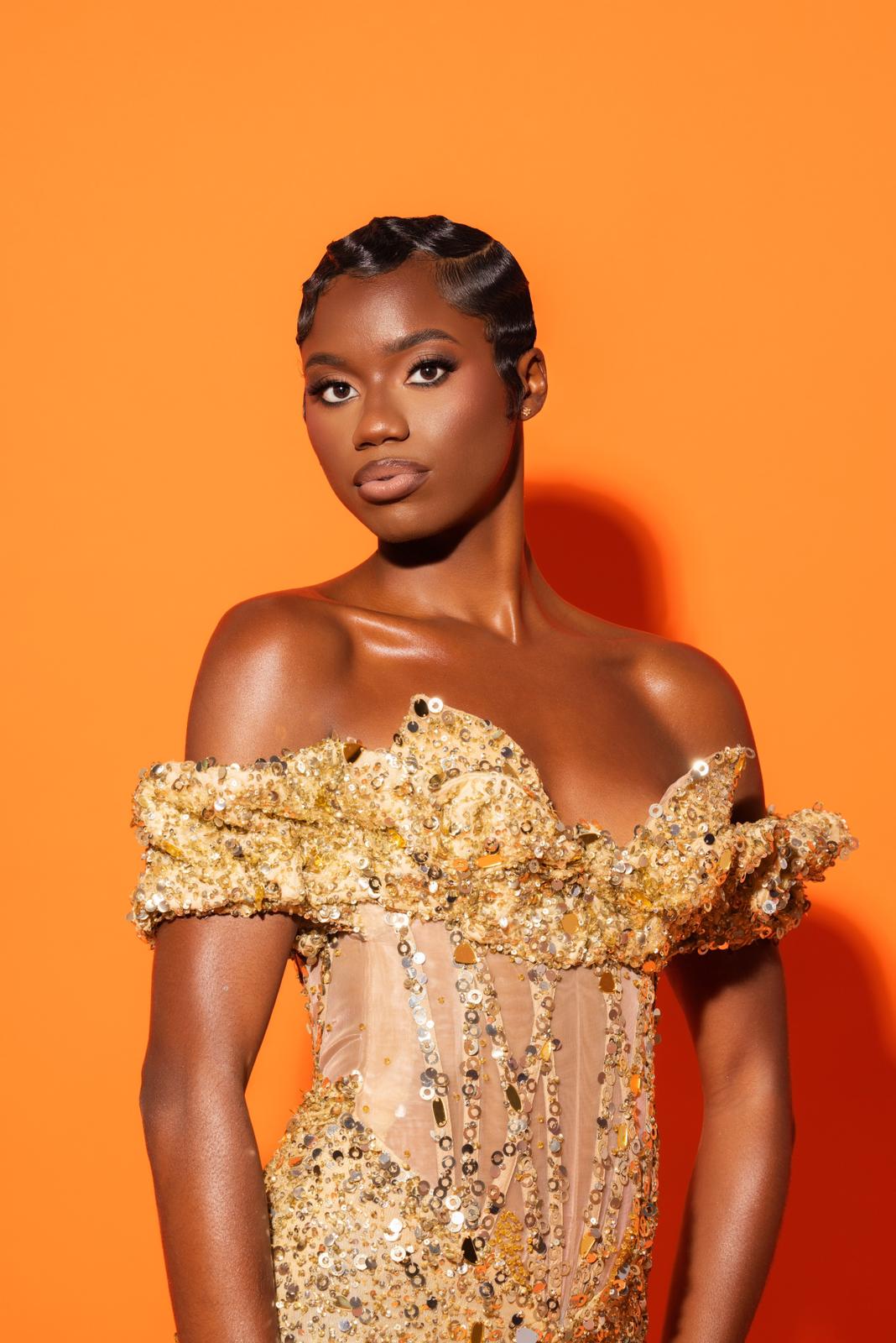 Elevate your prom night with this stunning gold sleeveless strapless gown. Crafted with meticulous attention to detail, the dress features exquisite appliqués that add dimension and sophistication to the bodice. The strapless silhouette creates an elegant, timeless look, while the sleeveless design offers a modern edge. The rich gold tone complements all skin tones and photographs beautifully under any lighting. Perfect for making a memorable entrance, this dress combines classic elegance with contemporary style for an unforgettable evening.