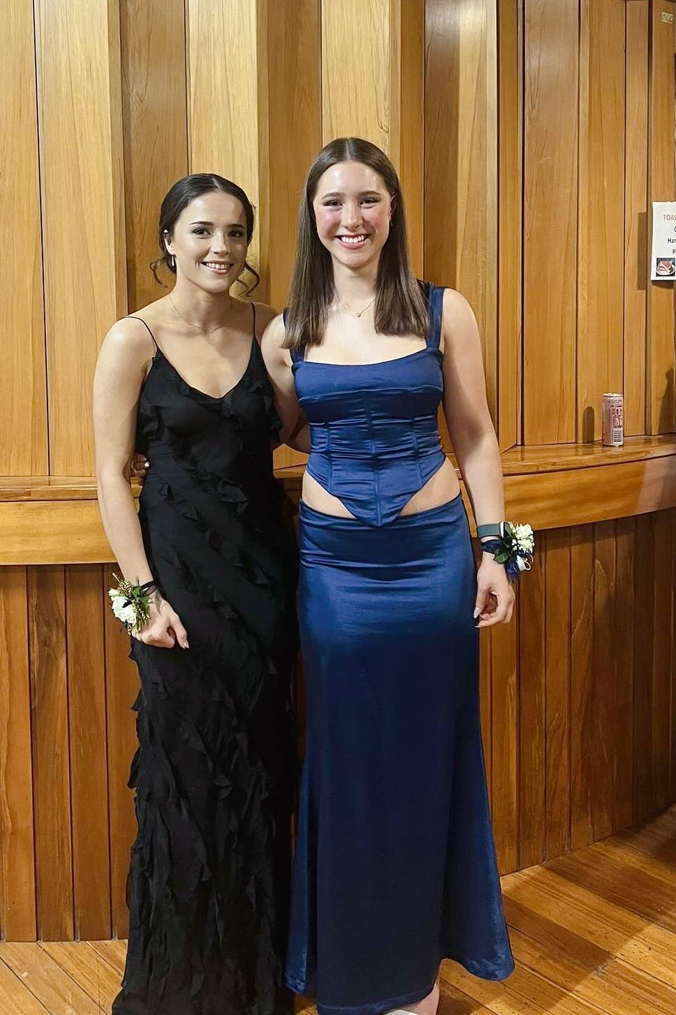 Stunning two-piece yellow satin mermaid dress featuring a square-neck crop top with wide straps, exposed waist, and flowing floor-length skirt. The tie-back detail adds elegance and sophistication to this show-stopping party look.
